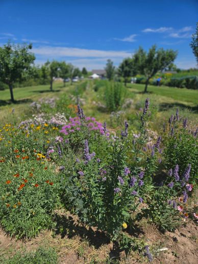 The Prairie Peace Garden reflects Bryan’s commitment to sustainable agriculture that values the health of the soil and helps support the many denizens that inhabit or frequent the site including a symphony of birds, bees, and butterflies. You are welcome to bring a lunch to enjoy by the creek on this site which is a few miles southeast of Townsend.